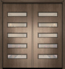 WDMA 64x80 Door (5ft4in by 6ft8in) Exterior Mahogany 80in Double Santa Monica Contemporary Door w/Metal Grid