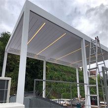 Type:Arches, Arbours, Pergolas & Bridge Place of Origin:Guangdong, China Metal Type:Aluminum Feature:Easily Assembled, ECO FRIENDLY, Renewable Sources, Waterproof Material:Extruded Aluminum Alloy (6063-T5) Color:grey, white, black or customized Size:grey, white, black or customized Surface treatment:powder coated Warranty:10 years Operation:Motorized (remote Control) Sensor system available:Rain Wind Sensor Application:Dining/Bar/Relaxation/Swimming pool etc. Wind load...