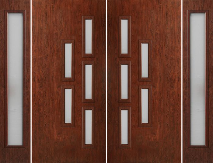 WDMA 96x80 Door (8ft by 6ft8in) Exterior Cherry Contemporary Modern 5 Lite Double Entry Door Sidelights FC553