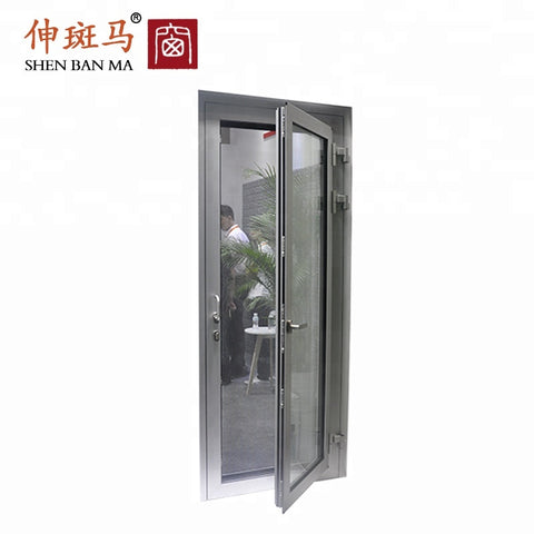 Aluminum Frame Glass Swing Door Residential Entry Doors Single Leaf Double Swing Door  Product Description Product Name: Aluminum Frame Glass Swing Door Residential Entry Doors Single Leaf Double Swing Door  Brand: Shenbanma Aluminium Extrusion Profiles: 6063-T5 aluminium alloy Hardware: According to your request Glass type: According to your request Glazing Option: 48mm Color:...