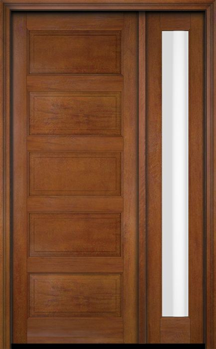 WDMA 34x78 Door (2ft10in by 6ft6in) Exterior Swing Mahogany 5 Raised Panel Solid Single Entry Door Sidelight