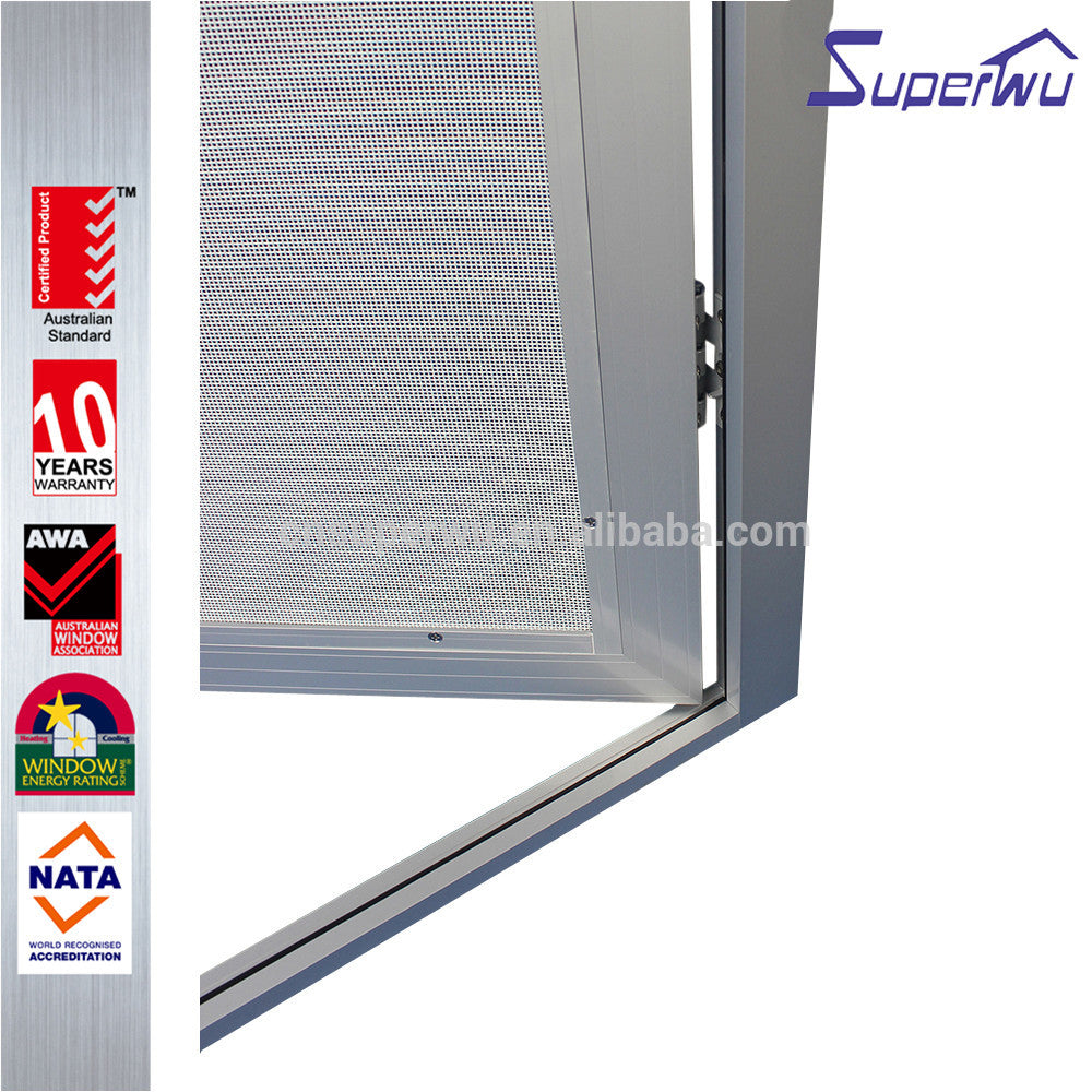 Silvery aluminum stainless steel mesh hinged door as security door Product Description Click for more informations!!! Features l SP86 SP100 SP130 SP150 series available for housing,residential,commercial and luxury villa l Grill and fly screen available l Flyscreen with taking off easily and cleaning l With timber reveal, easy installation l Fin flat angle for double...