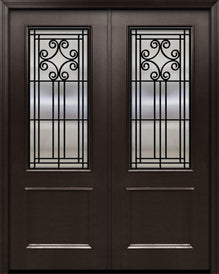 WDMA 64x96 Door (5ft4in by 8ft) Exterior 96in ThermaPlus Steel Newport Contemporary Double Door w/Textured Glass