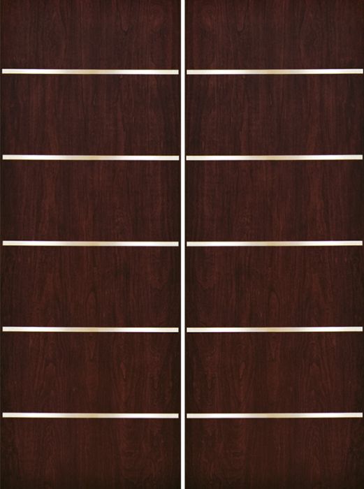 WDMA 84x96 Door (7ft by 8ft) Exterior Cherry 96in Contemporary Stainless Steel Bars Double Fiberglass Entry Door FC875SS
