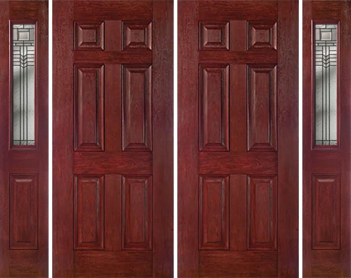 WDMA 88x80 Door (7ft4in by 6ft8in) Exterior Cherry Six Panel Double Entry Door Sidelights 1/2 Lite KP Glass